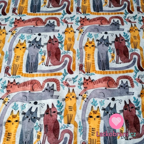 Úplet potisk parta koček na šedé melé