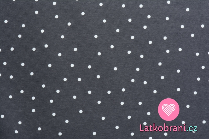 Teplákovina potisk rozházený bílý puntík na šedé