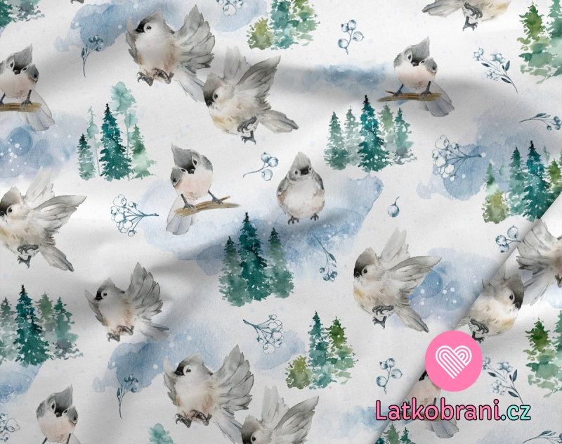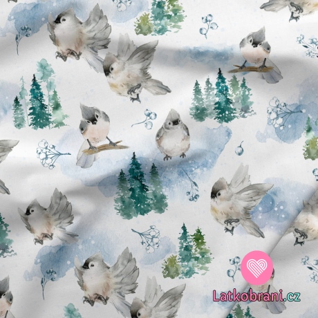 Teplákovina potisk ptáčci v zimní krajině