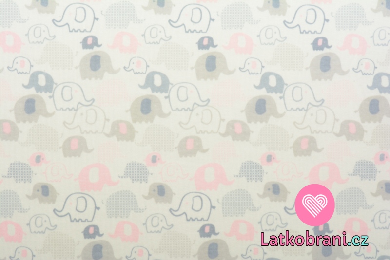 Úplet digitisk růžová a šedá slůňátka na bílé