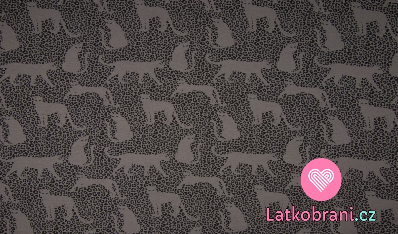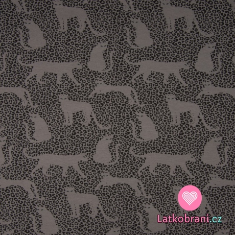 Teplákovina potisk počesaná leopardí vzor se siluetami leopardů v šedé