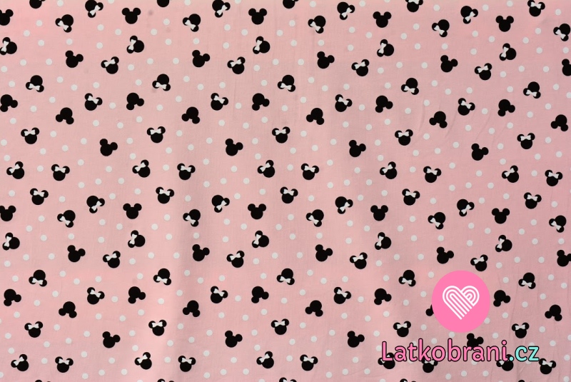 Úplet potisk hlavička myšky s mašličkou a puntíkem na růžové