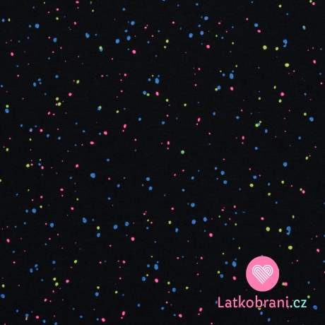 Teplákovina potisk nepravidelné neonové nopky na černé