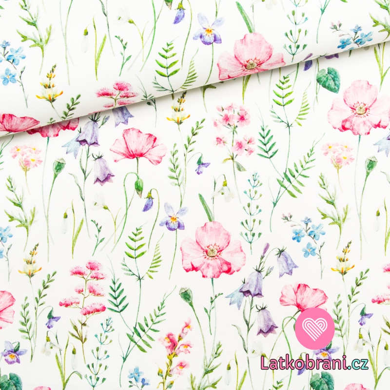 Bavlněné plátno luční kvítí, vlčí mák