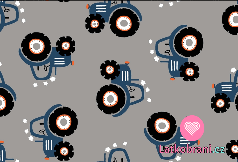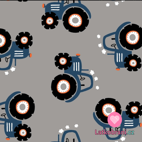 Úplet potisk modré traktory na šedé