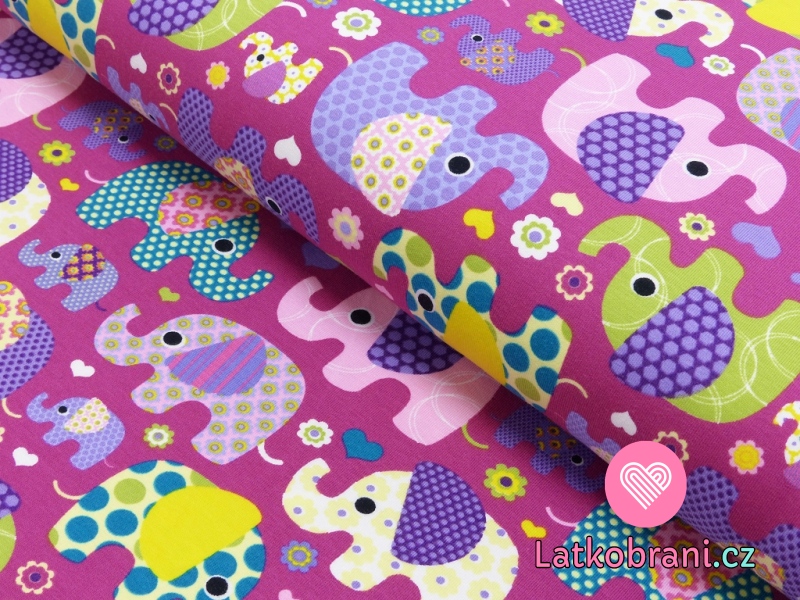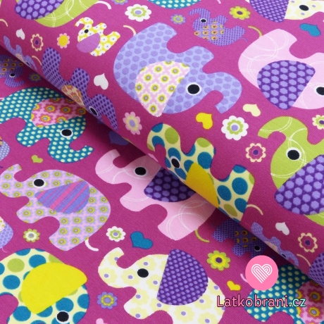 Úplet potisk barevní sloni a slůňátka na fialové