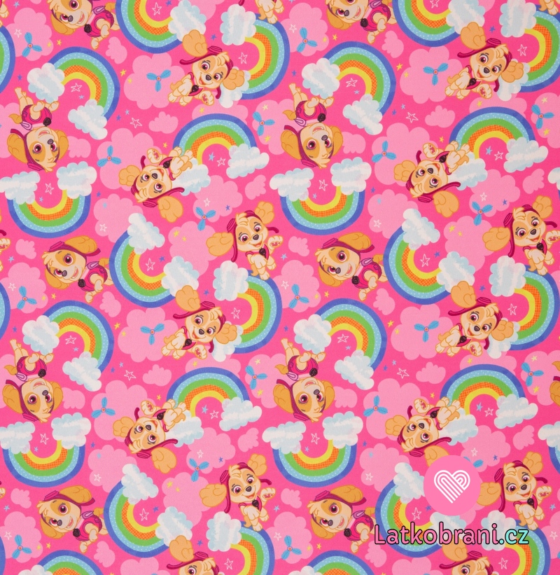 Úplet Tlapková patrola s obláčky a duhou na růžové