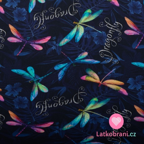 Úplet potisk duhové vážky na tmavě modré 180 g