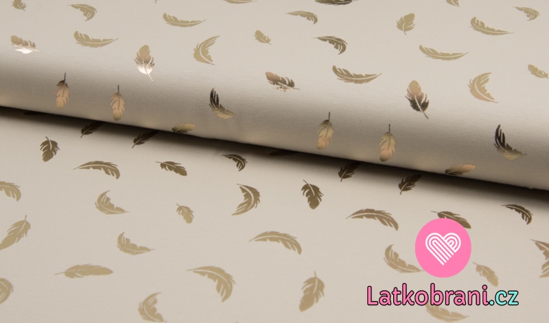 Úplet potisk metalická peříčka smetanová do bílé kávy