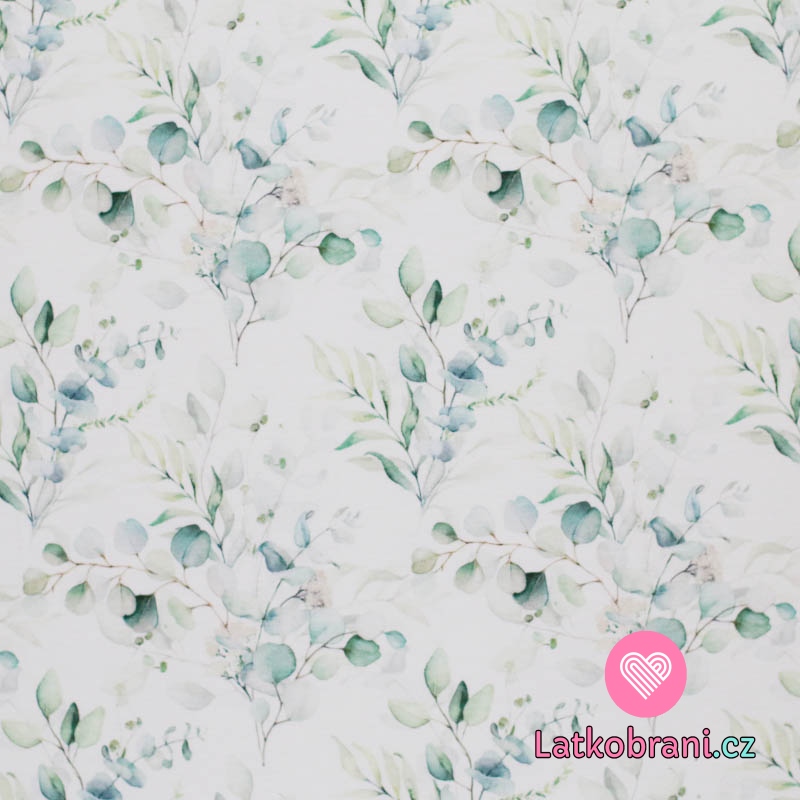 Úplet potisk větvičky eukalyptu v kytici na zaprášené bílé