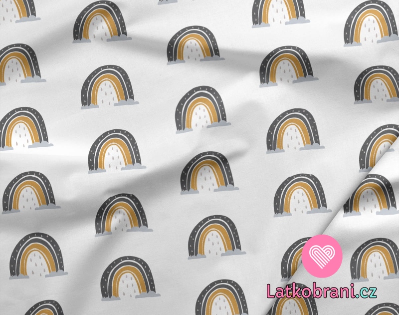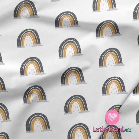 Bambusová viskóza potisk okrovo-antracitová duha s kapkami deště