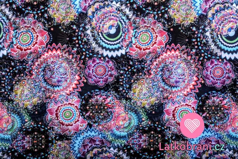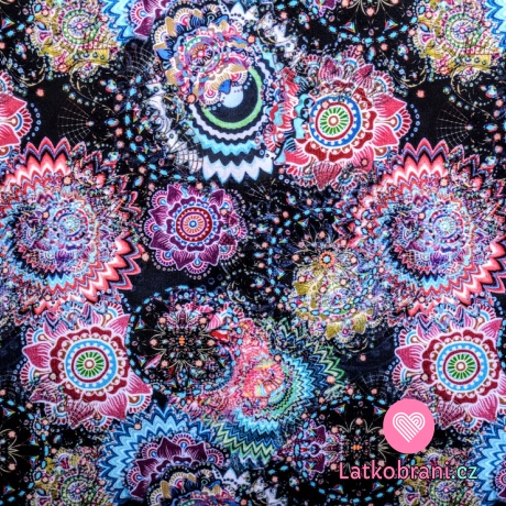 Teplákovina potisk barevné mandaly na černé