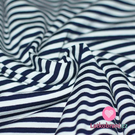 Viskózový úplet stejně široké proužky námořnická modrá - bílá