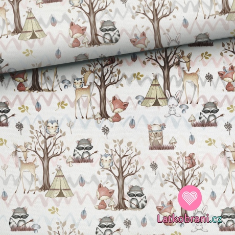 Úplet lesní přátelé u týpí na smetanové