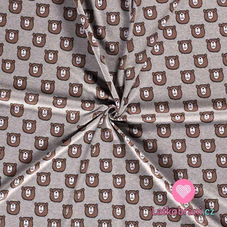 Pletený žakár hlavičky medvídků na šedém melé