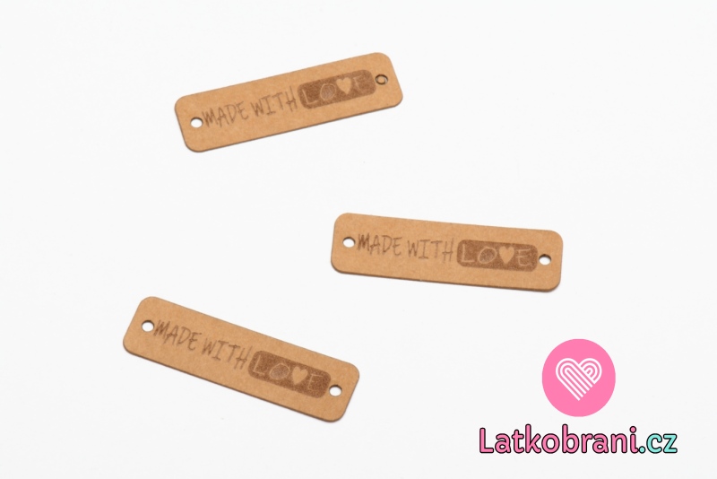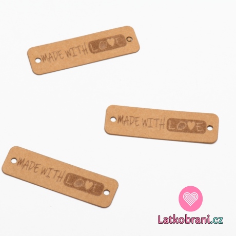 Štítek na oblečení "Made with love" hnědý