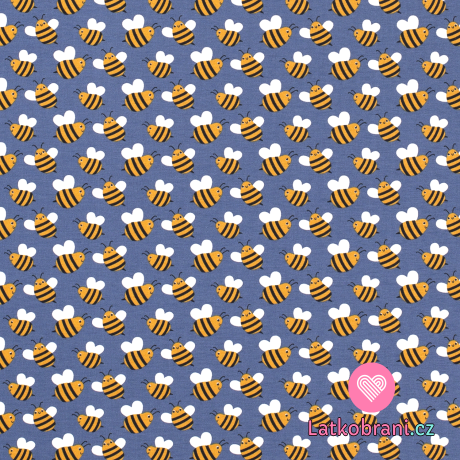 Úplet potisk boubelaté včeličky na inkoustově modré