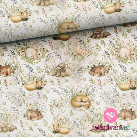 Teplákovina potisk zvířátka spící na rozkvetlé louce