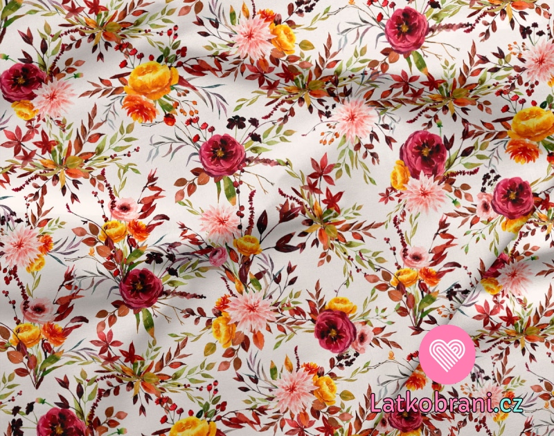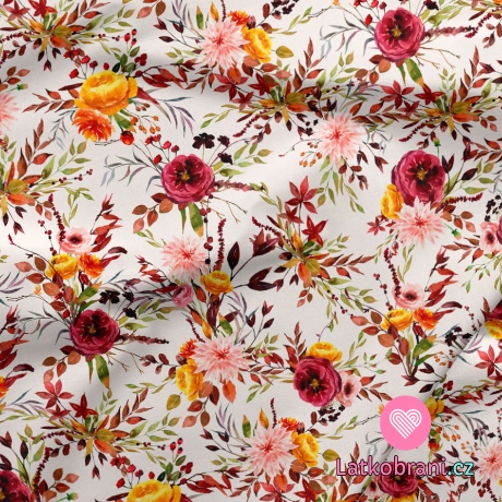 Teplákovina potisk letní zahrádka na bílé