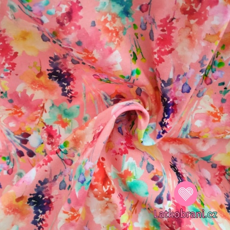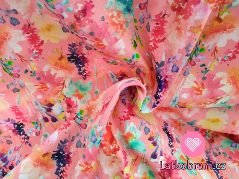 Úplet potisk malované luční kvítí na růžové