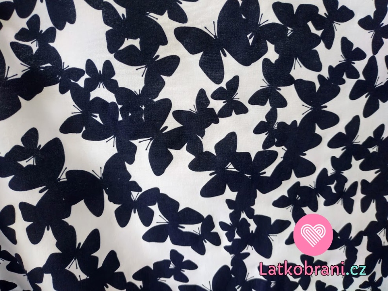 Úplet potisk tmavě modré navy motýli na bílé 160 g