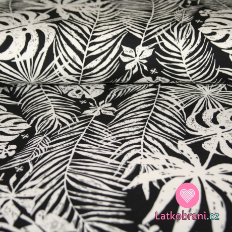 Úplet potisk palmové listy na černé