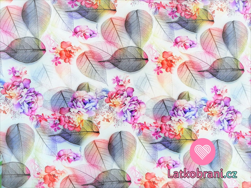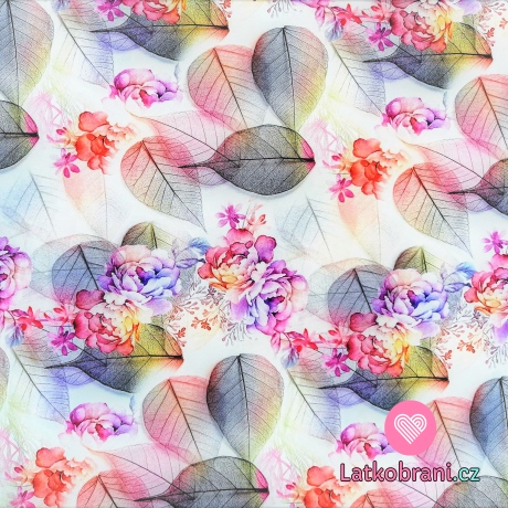 Úplet potisk křehké růže s listy na zaprášené bílé