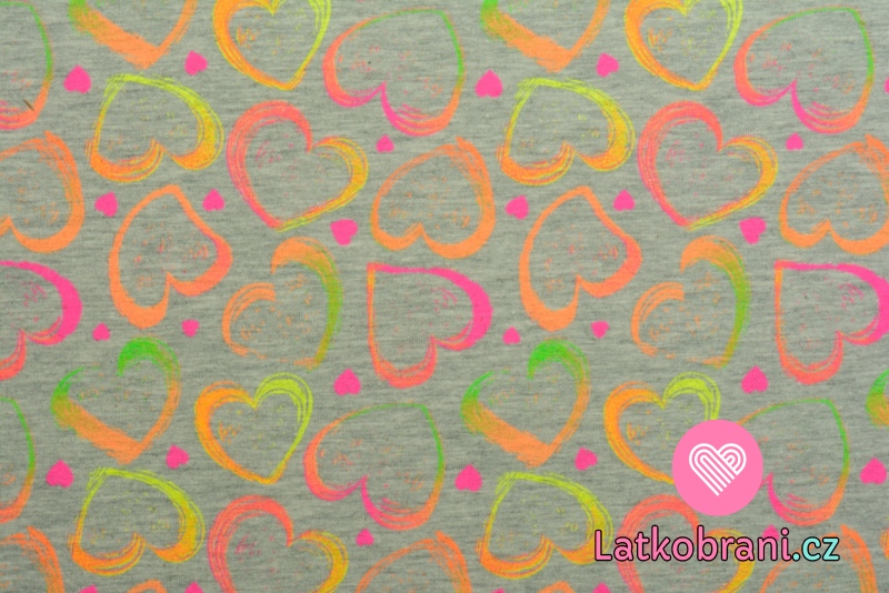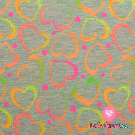 Úplet potisk sladká neonová srdíčka na šedém melé