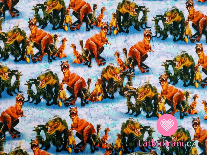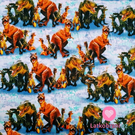Teplákovina potisk dinosauři na modrém maskáči