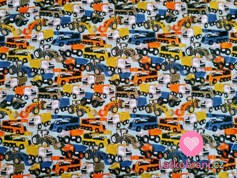 Úplet potisk jeřáby, nakladače a nákladní auta na modré