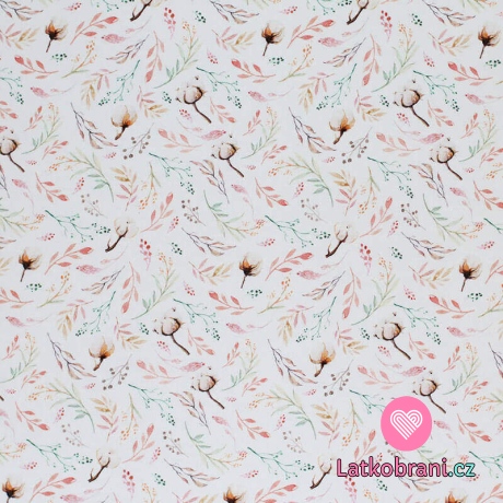 Úplet potisk bavlník mezi větvičkami na bílé