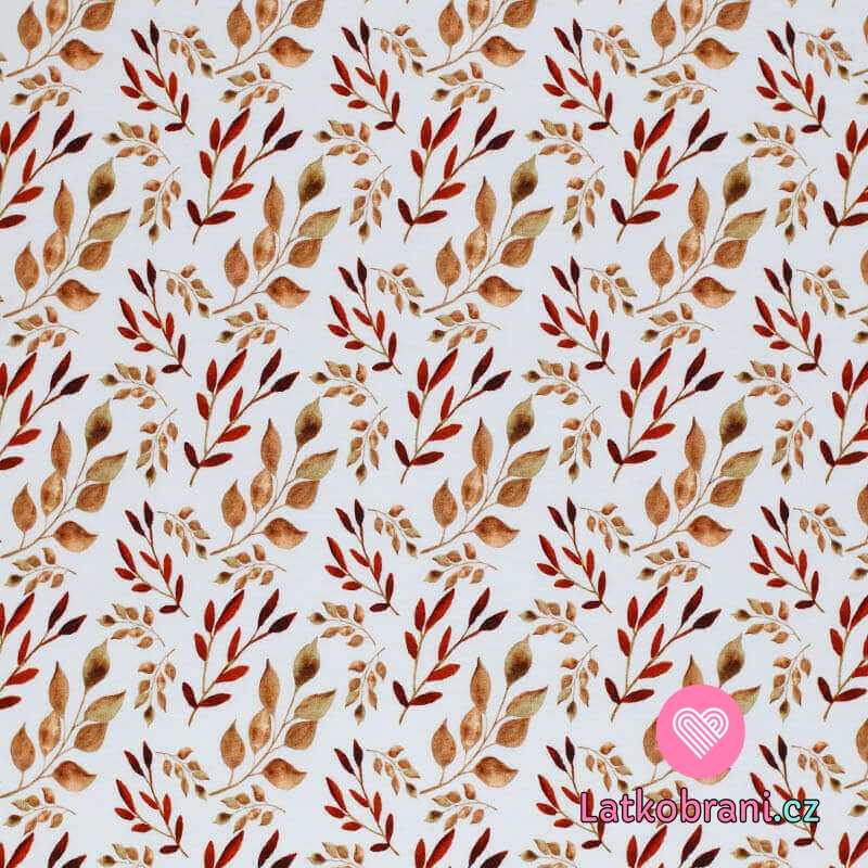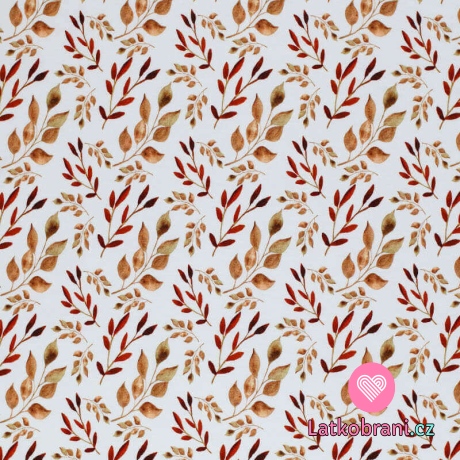 Úplet potisk podzimní větvičky s lístky na bílé