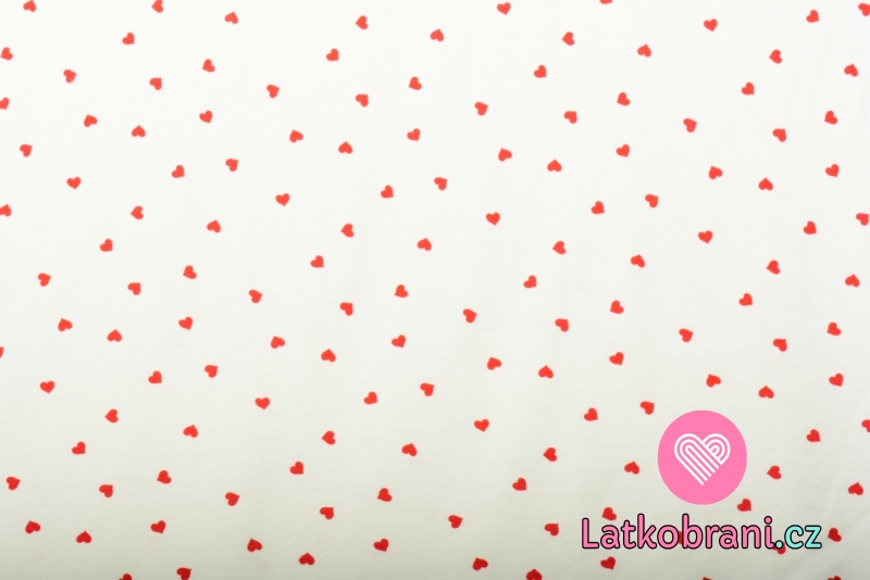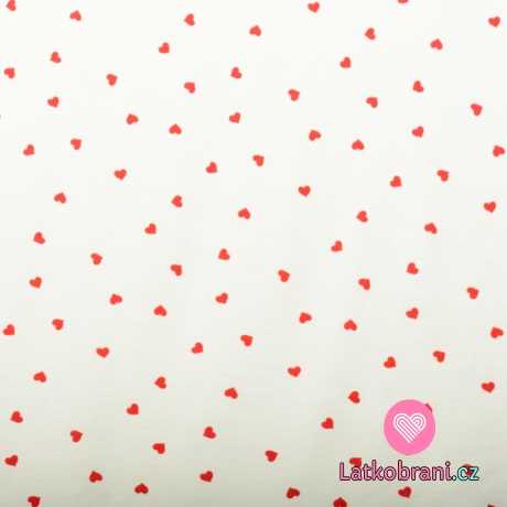 Úplet potisk rozházená červená srdíčka na smetanové 160 g