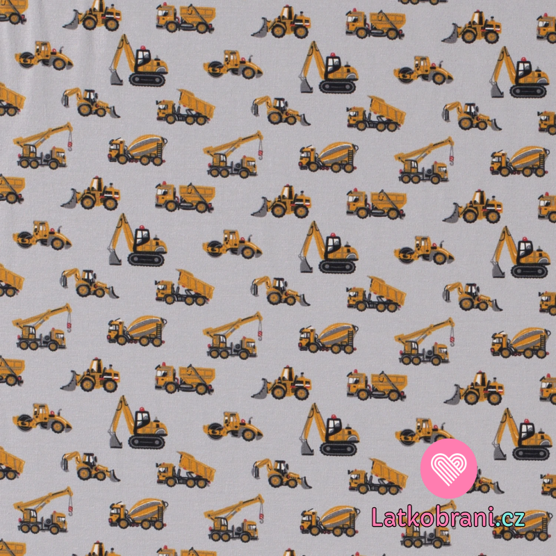 Úplet potisk těžké stavební stroje na světle šedé
