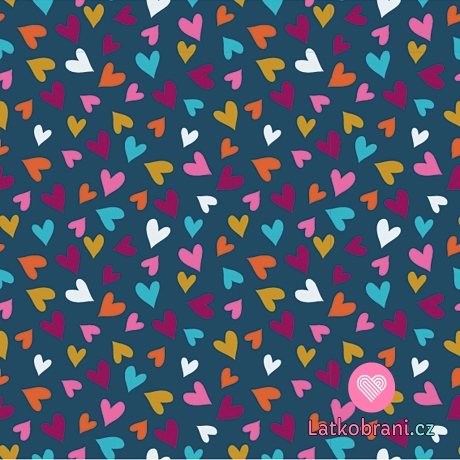 Úplet potisk barevná srdíčka na námořnicky modré