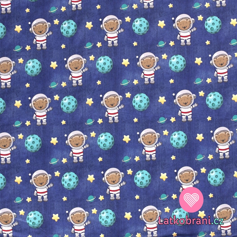 Teplákovina potisk méďa kosmonaut na modrém jeans