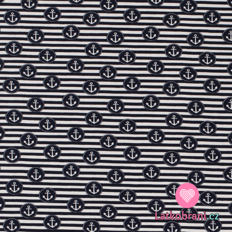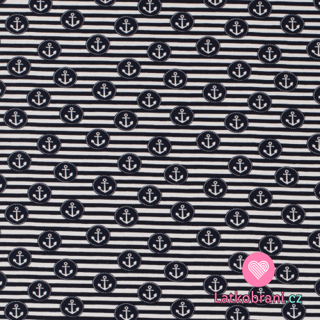 Úplet potisk kotvičky v medailonku na bílo - modrých proužcích