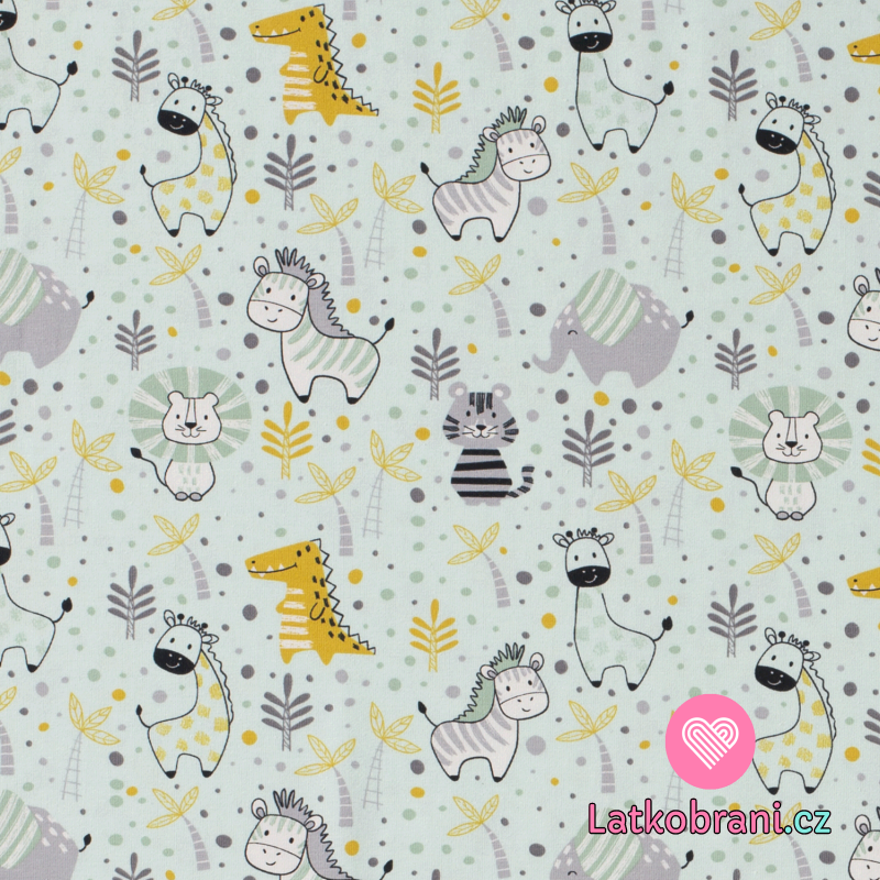 Úplet potisk roztomilá zvířátka v zoo na světlé mintové
