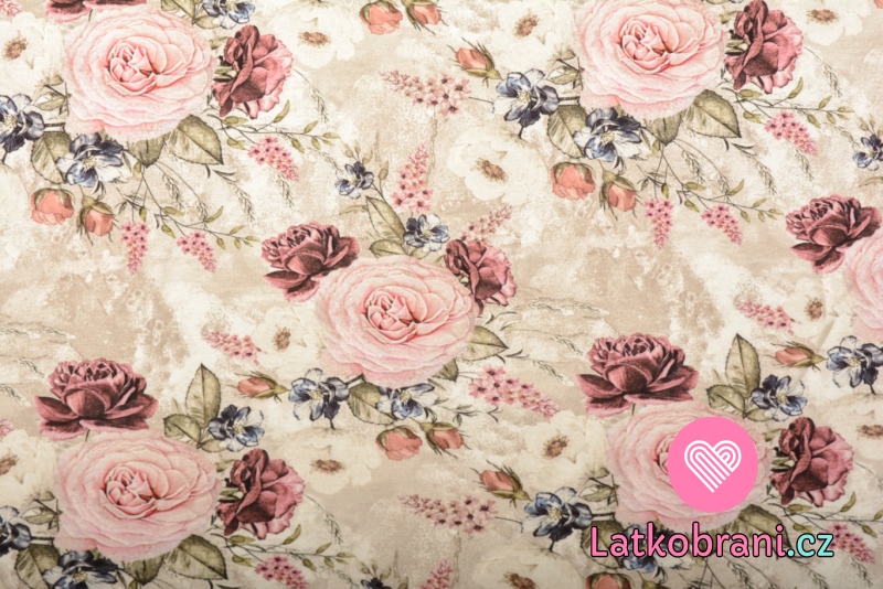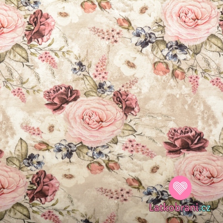Úplet potisk elegantní růže na béžovo-ecru podkladu