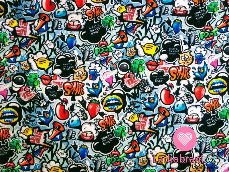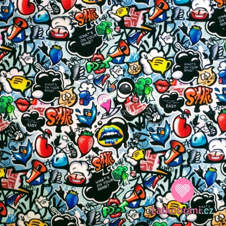 Teplákovina potisk drobný pestrý komiks