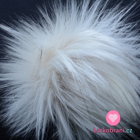 Bambule na čepici bílá, černé konce - dlouhý chlup