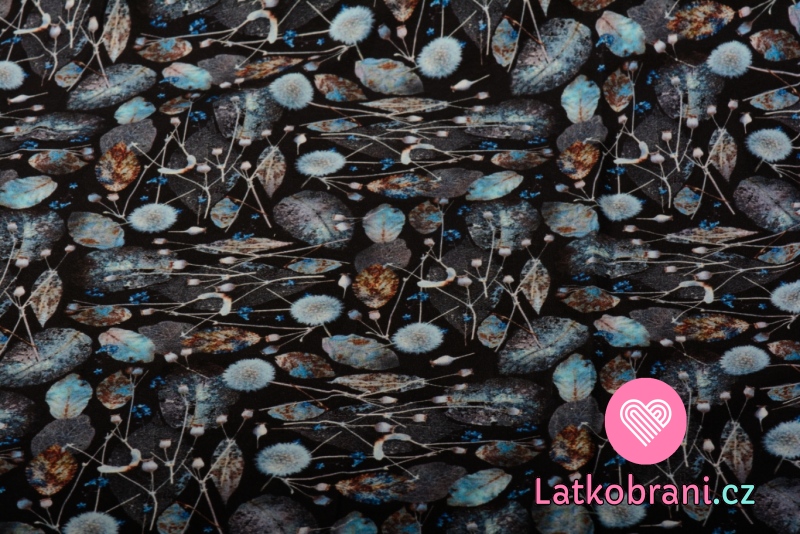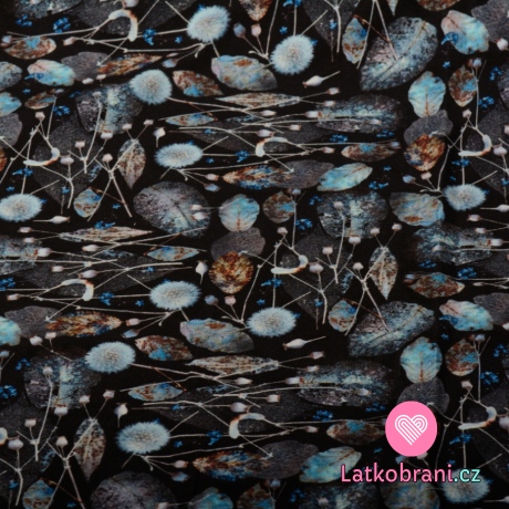 Teplákovina potisk makovice a odkvetlé pampelišky na černé