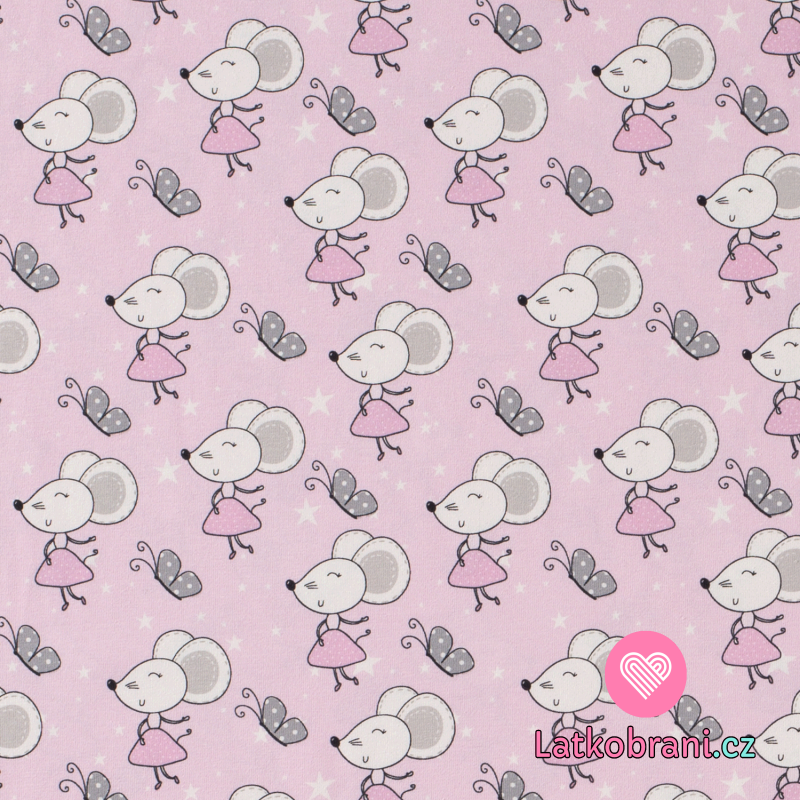 Úplet potisk myšky v sukýnkách na růžové