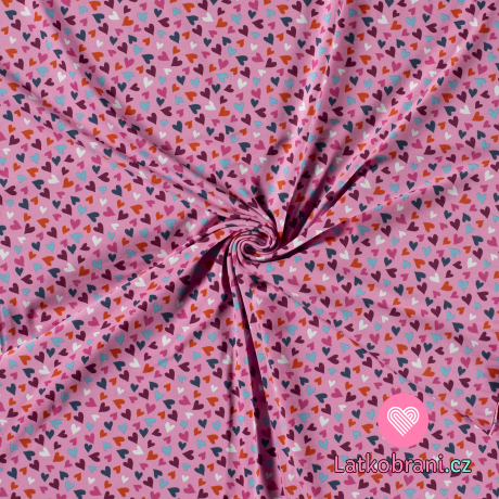 Úplet potisk barevná srdíčka na růžové