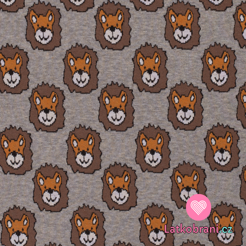 Pletený žakár hlavičky lvíčků na béžovém melé