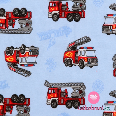 Bavlněný úplet hasičské auto na modré