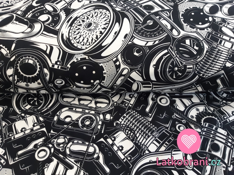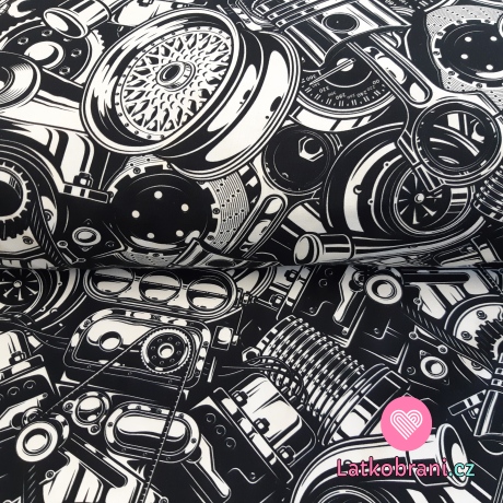 Úplet potisk náhradní automobilové díly na černé