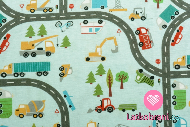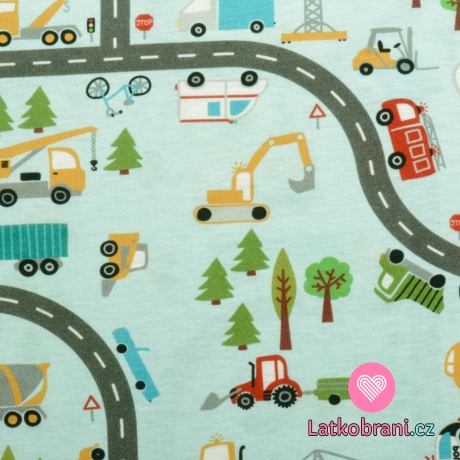 Bavlněný úplet dopravní prostředky na silnici na modré