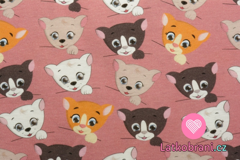 Bavlněný úplet vykukující koťátka na růžové