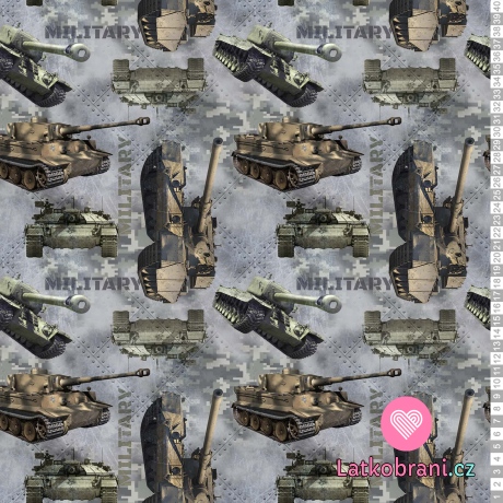 Teplákovina počesaná potisk vojenské tanky na "pancéřovaném" podkladu